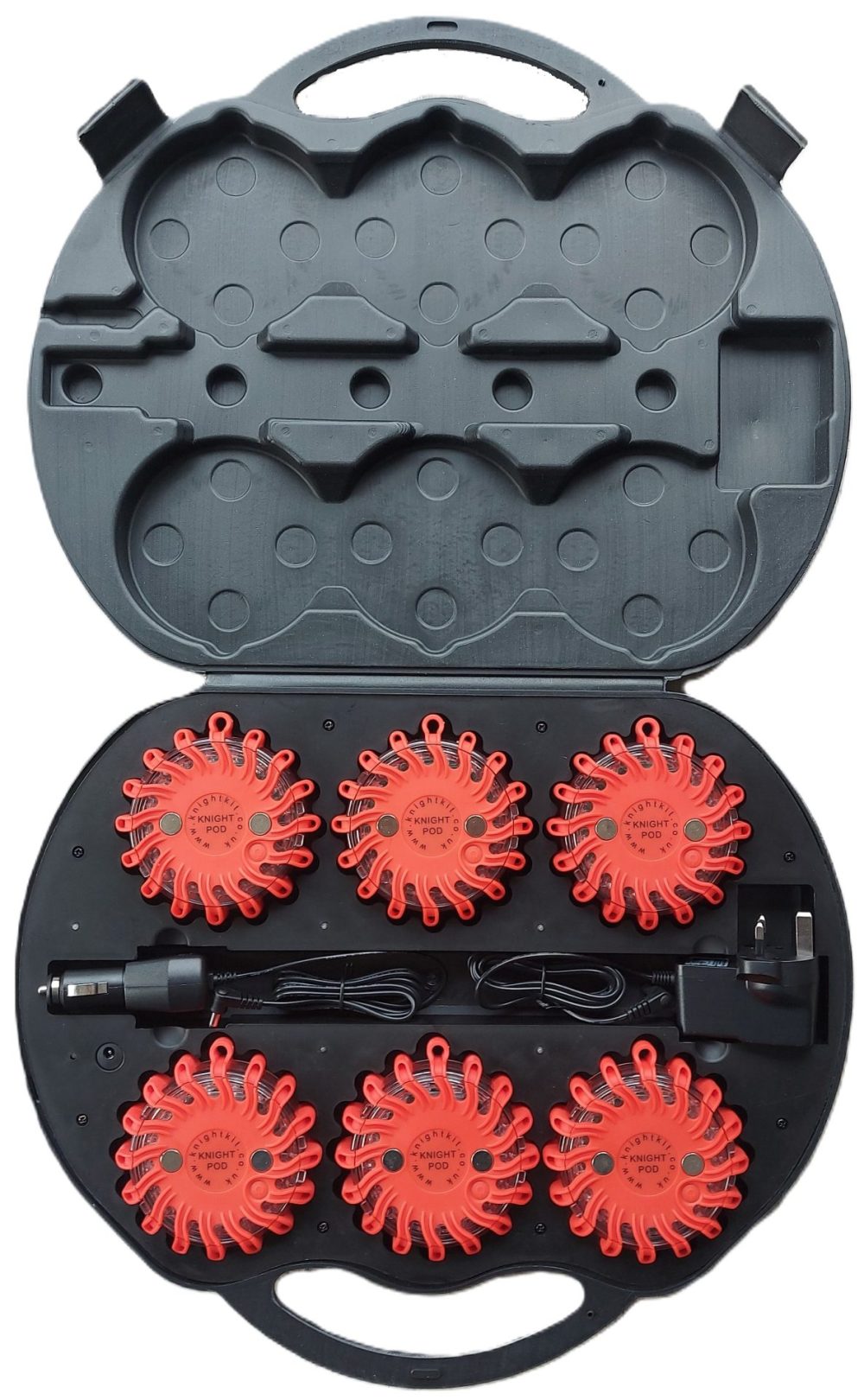 Supplied in a carry case with chargers, these red warning beacons can be deployed in seconds by simply being dropped onto a road surface or attached to a metallic surface via its internal strong magnet.