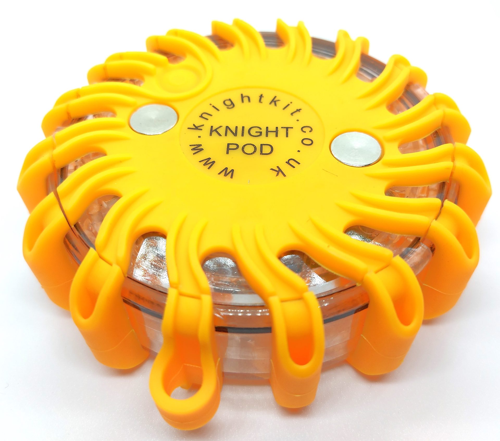 Yellow Knight Pod Singlet – NB this comes with no charging kit so you will need either an existing charging case or charging accessory kit. Our case set of 6 yellow warning beacons and single yellow hazard warning light with charging kit are the same item but with different combinations of accessory. The KB55Y with charging kit can be seen here.